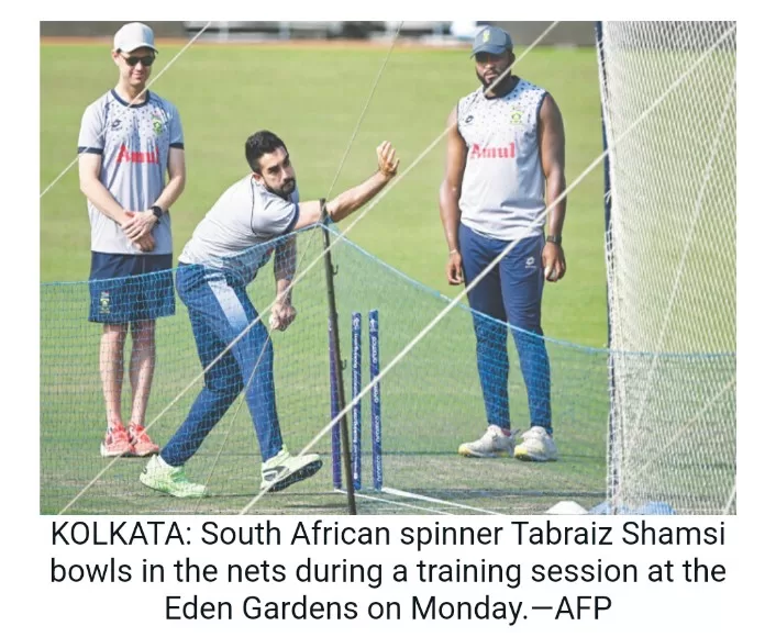 In Kolkata, South African spinner Tabraiz Shamsi honed his skills in the nets at the iconic Eden Gardens on Monday, as captured by AFP. Meanwhile, Mitchell Starc lauded Australia’s resilience, asserting that the team, true to its legacy, is hitting its stride at the opportune moment after a shaky initiation, securing seven consecutive victories in the World Cup.