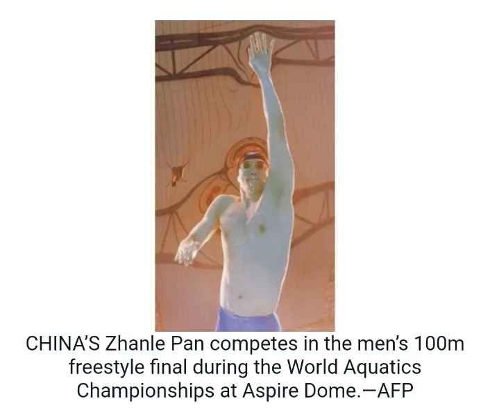 DOHA: China’s Pan Zhanle backed up his men’s 100 metres freestyle world record by winning the world title in Doha on Thursday in a warning to rivals for the Paris Olympics gold medal.