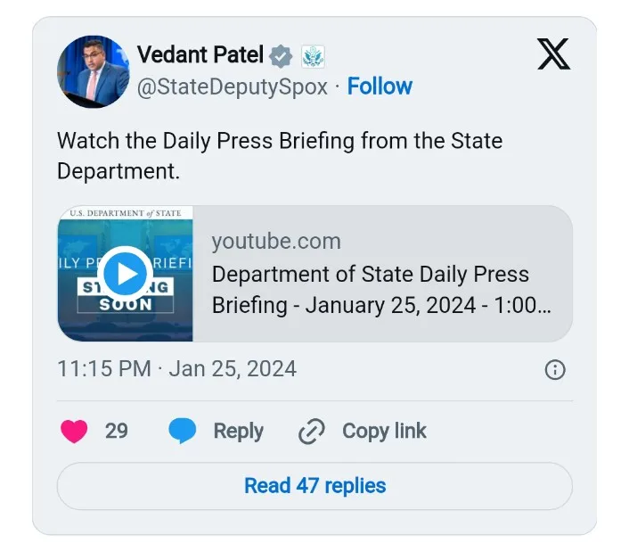 “We also have not been ambiguous about how we feel very strongly that free and independent media are vital institutions that undergird healthy democracies by ensuring that elector can make informed decisions and hold the government to account,” Patel stated.